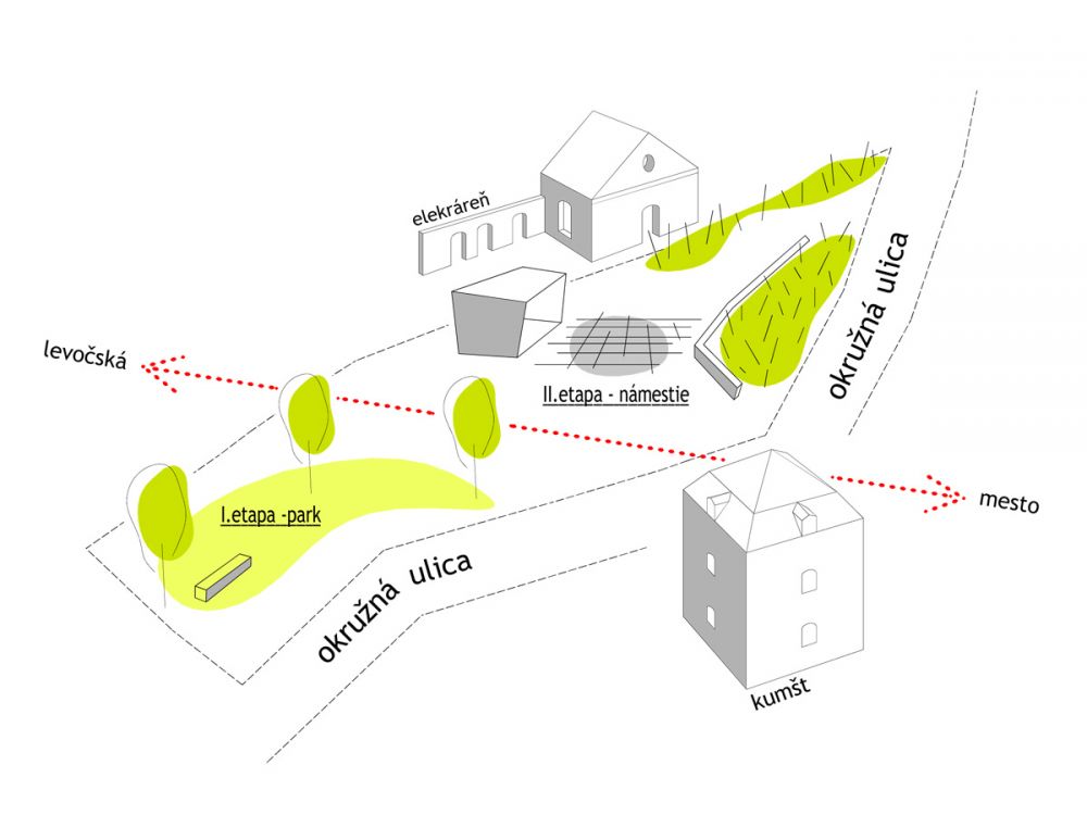 V druhej fáze sa vytvoria chodníky, multifunkčné a detské ihrisko.